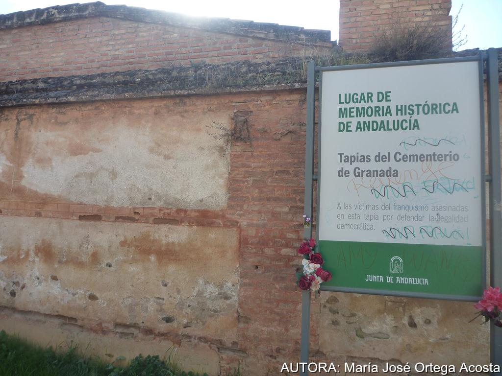 Continuamos nuestro camino hacia la Silla del Moro entre los olores que desprenden las barbacoas repletas de carne. Pasamos de largo por la ladera de enfrente del Palacio de Dar al Arusa, y luego la Silla del Moro. Es tarde y continuamos nuestro itinerario en el cementerio, primero viendo el muro donde fueron asesinados a balazos casi 4000 personas entre 1936 a 1956. Luego hacemos un recorrido por los diferentes patios, observando las tumbas de personajes ilustres, Angel Ganivet, Melchor Almagro, o tumbas con leyendas como la de la Aurora de Granada, o la del Señor del Cementerio. Al final llegamos a la Alberca del Palacio de los Alixares, únicos restos que perviven de esta almunia, donde se respira un ambiente tranquilo.