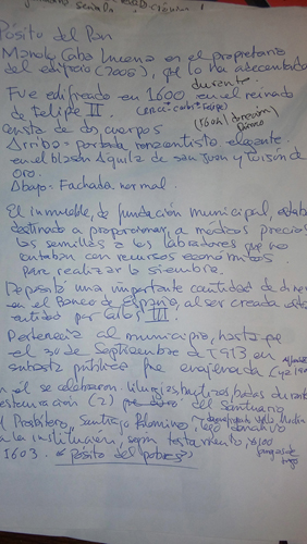 La siguiente visita fue el Pósito del Pan edificio construida en el siglo XVI aunque su función y remodelación fue más tardía ( ver apuntes), la función de este edificio era la venta de grano con unas condiciones de compra más aceptables para los agricultores más pobres, como un primer banco o caja de ahorros o Montepío.