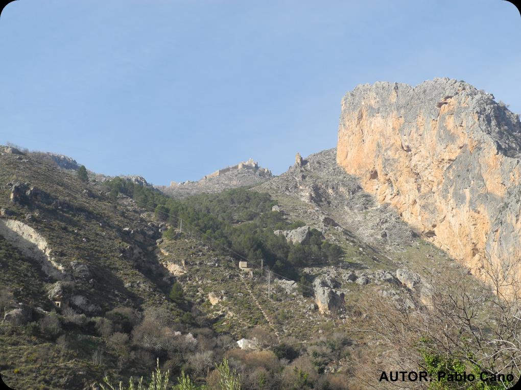 Seguimos subiendo hasta llegar al desvío que nos conduce a las pinturas rupestres en el Abrigo de la Cañada de la Corcuela, donde aunque mal conservadas hay figuras humanas y de algunas zoomórficas “parecido a una cabra, vamos”. Allí discutimos sobre su edad. Tras arduas investigaciones al final he encontrado que son del neolítico y que los lugares en donde se encentran no eran lugares destinados a vivienda sino lugares sagrados donde se realizaban ritos.