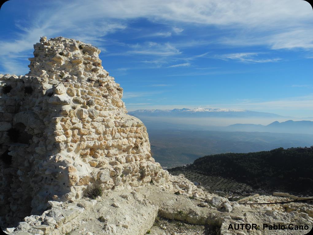 Continuamos la lenta y apacible subida haciendo fotos a los almendros en flor y poniendo la vista en el castillo de Moclín que nos vigila desde lo alto. Llegamos hasta el collado que nos pasa al lado de Olivares. Allí hacemos un pequeño descanso con picoteo incluido. Tenemos Moclín a un lado y al otro un pico pequeño de nombre desconocido para mi, al que como buenos Mulhaceneros no nos podemos resistirnos y subimos, alguna cumbre aunque pequeña habrá que hacer .