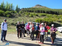 A los postres, como ¡Hay ganas!, y son las 1 “reprogramamos” la visita para ampliarla hasta la cascada de Piedra Resbaladiza en el río S. Juan, tomando la senda que nace en estos prados. Aunque nos demoramos, ante la explosión primaveral de tirañas, verónicas, gencianas, campanillas y “primaveras” primulas que ofrecen los arroyos y borreguiles que la acompañan, sobre las 13´30, entre el fragor del agua, cruzamos el río por un puente precario y comenzamos a subir a la cascada por el margen izquierdo. Pronto alcanzamos la acequia de careo de Hoyo Puente, que nos aproxima la la lámina quebrada de Piedra Resbaladiza, embargándonos la emoción , conforme va definiéndose el marco de esta recóndita cascada, hermoso “altar” de oscura piedra, por el que el rió se precipita con ímpetu descomunal. ¡ Grandioso espectáculo!. El “subidón” nos “ empuja” hacia arriba, en consecuencia, dejado testimonio en los anales fotográficos, generosos y valientes, sobre las 13'54, abandonamos la cascada por el margen derecho, remontando el río rumbo a la Hoya de la Mora, divididos en dos grupos. El mayoritario sube con Enrique por la empinada y pedregosa ladera, mientras que Ana, “pensando” en Mª Carmen y Alicia, y Kika y yo, por disfrutar de un camino más grato, seguimos el río, disfrutando de sus espléndidos borreguiles, hasta que, tras dura subida final, confluimos, sobre las 15'00, en la senda bajo el Mojon del Trigo (2606 mts). Reponemos fuerzas liquidando las últimas viandas, dado que la visita ha derivado en excursión cabal, ¡menos mal que Ana Q. ha guardado fresas y Ana C. sorprende con el chocolate!. Proseguimos la marcha, y, cuando finaliza la senda, entre el Observatorio Astronómico (1965) del Mojón del Trigo y el Albergue Militar (2610 mts), - cedido al Opus en los 80 – a las 15'30 bajamos raudos hacia el Albergue Universitario (construido en 1930), para iniciar ya la tercera parte de la excursión. Este albergue no solo conserva su idiosincrasia, sino que además es referencia en su segmento, sorprendiendo por su calidad y confort. Hacia las 15'48 iniciamos el descesnso bajando a la carretera, que seguimos con desgana durante un kilométro largo, hasta que Enrique y Ana, sobre las 16´20, cogen la senda que, en ligero ascendo, dando las espalda al Veleta y valle del río Monachil, rodea la falda de los Peñones, y, enlazando con el Collado del Diablo vuelve a meternos el el valle del Genil. Situados sobre la via pecuaria que une los Prados de la Mojonera con el Collado de las Sabinas ( 2175 mts), sobre las 16´36, se organiza la bajada definitiva a Prado Redondo, que, satisfaciendo el gusto de Kika, la experiencia de Enrique y el criterio “topográfico” de Ana, va perimetrando la cuerda, tapizada con abundante “piornal” y donde los inevitables “mancaperros” van “masajeando” los tobillos. Sobre16´45, nos situamos por encima de las instalaciones militares del Collado de las Sabinas (2175 mts). Allí “inventariamos” el último albergue, en su día gestionando por “Educación y Descanso”, para seguidamente bajar al encuentro de la senda, patente en la falda de Cañadillas (2201 mts) y Monte ahí de Cara (2102 mts, pero, en este tramo, oculta bajo los desmontes de la carretera.Tras cruzar el Barranco del Tejo y situados finalmente sobre la “histórica” senda, comprobamos que está en perfecto estado, conservando incluso las señales de madera originales, sorprendiendo la “exhuberancia” y variedad vegetal fuera de lo común que presenta. Informan que es un paraje visitado antes y ahora por los los botánicos más reconocidos. Además realiza el descenso de modo tan eficaz y “fulgurante” que en un suspiro atraviesa el pinar, visita la fuente de Prado Redondo, (junto a un cortijo en ruinas) y finalmente, tras una curva, sale a un carril terrero que “da vistas” a la alameda de las casillas de los Martínez, donde nos esperan los vehículos. A las 17'45, habiendo recorrido 20 kms en unas 8 horas, ( 5'5 andando, aseguran los podómetros electrónicos) , superado un desnivel de unos 700 mts, damos por finalizada esta preciosa jornada tan especial de A Pié por la Historia, celebrándolo como es debido en el bar- hostal El Puente.