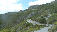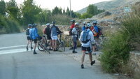 El grupo ascendió sin problemas, aunque todo el mundo "mosca", porque no había indicios de esos paduleños que supuestamente iban por delante. ¿habrían desistido?. Así llegamos a la curva desde la que se contempla cual longaniza interminable, la Cuesta de la Humillación. Hubo quien pensó que es esa curva, de tan acongojante panorama, la que merecía llamarse "Del mal nombre". Antes de comenzar la subida, hubo que esperar a encontrar el sitio adecuado, no fuera a "darnos un aire" mientras cogíamos fuerzas para lo que nos esperaba...