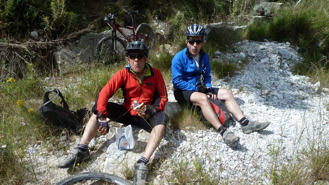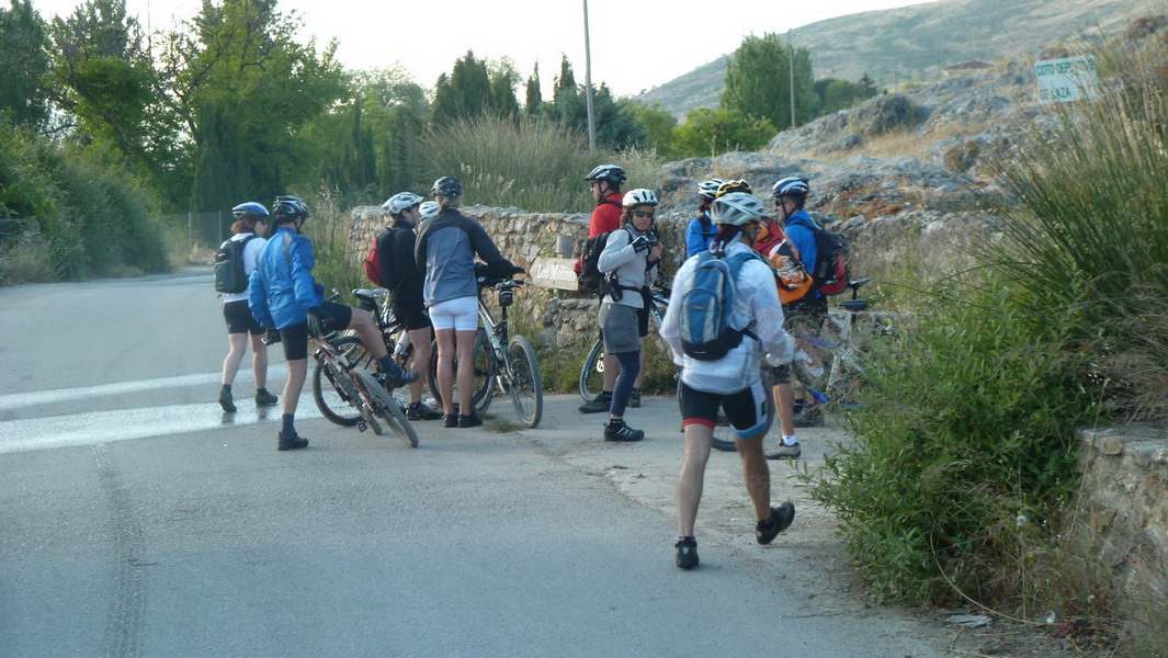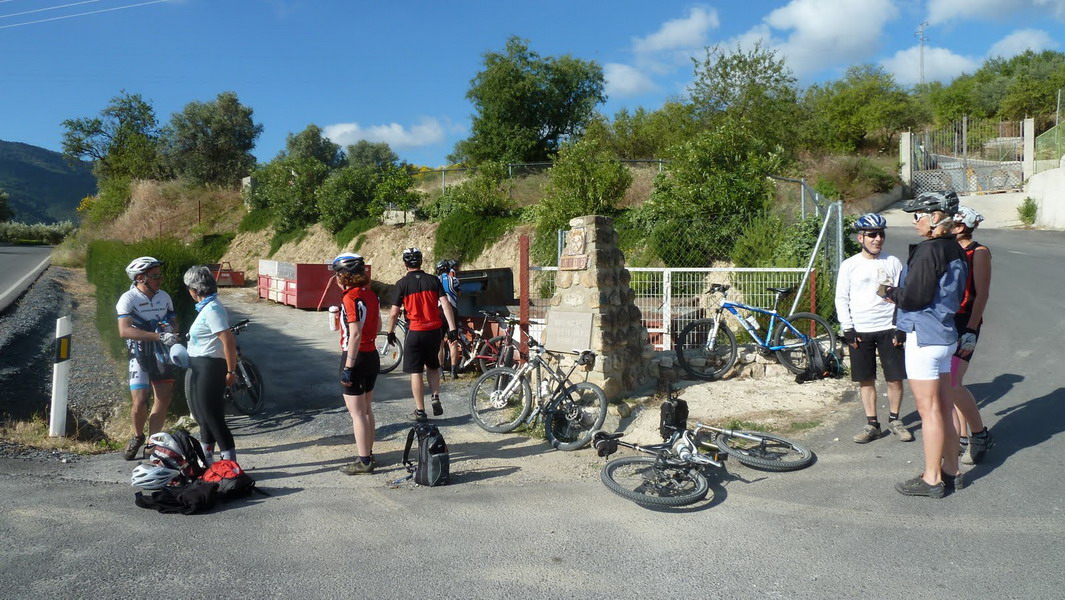 En Padul hubo intento de motín pidiendo café y tostada, pero "nones"; sólo hubo ocasión de parar en la fuente del "Mal Nombre", llamada así por los romanos porque cada vez que un grupo de féminas ciclistas se arrebujan a miccionar, los labriegos del lugar se empinan para verles el susodicho. Y nuestras ciclistas cumplieron con la tradición, ¡por supuesto!. Mientras tanto, otros buscaban inútilmente huellas de dinosaurio, ¿o eran de Mamuth?.