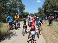 Los niños se tomaron esta parte del trayecto como si fuera una etapa del Tour, achuchones, codazos, adelantamientos, cambios de trazada, sprint y todo esto mezclado dio como resultado varias montoneras. Menos mal que el recorrido era corto, sino acabamos en el Hospital Virgen del Rocío de Sevilla.