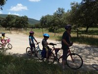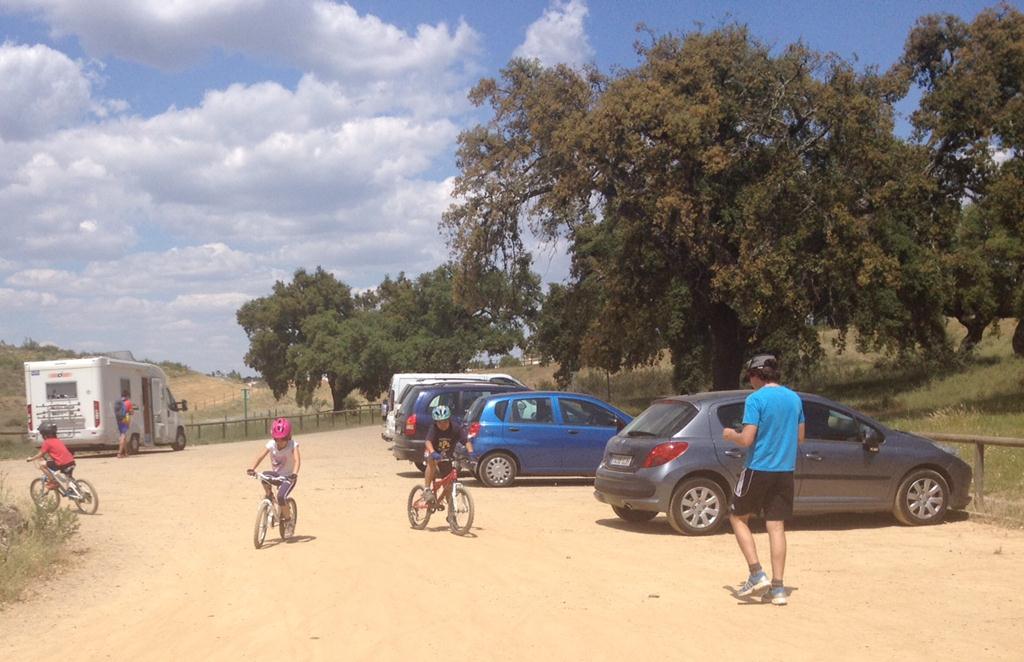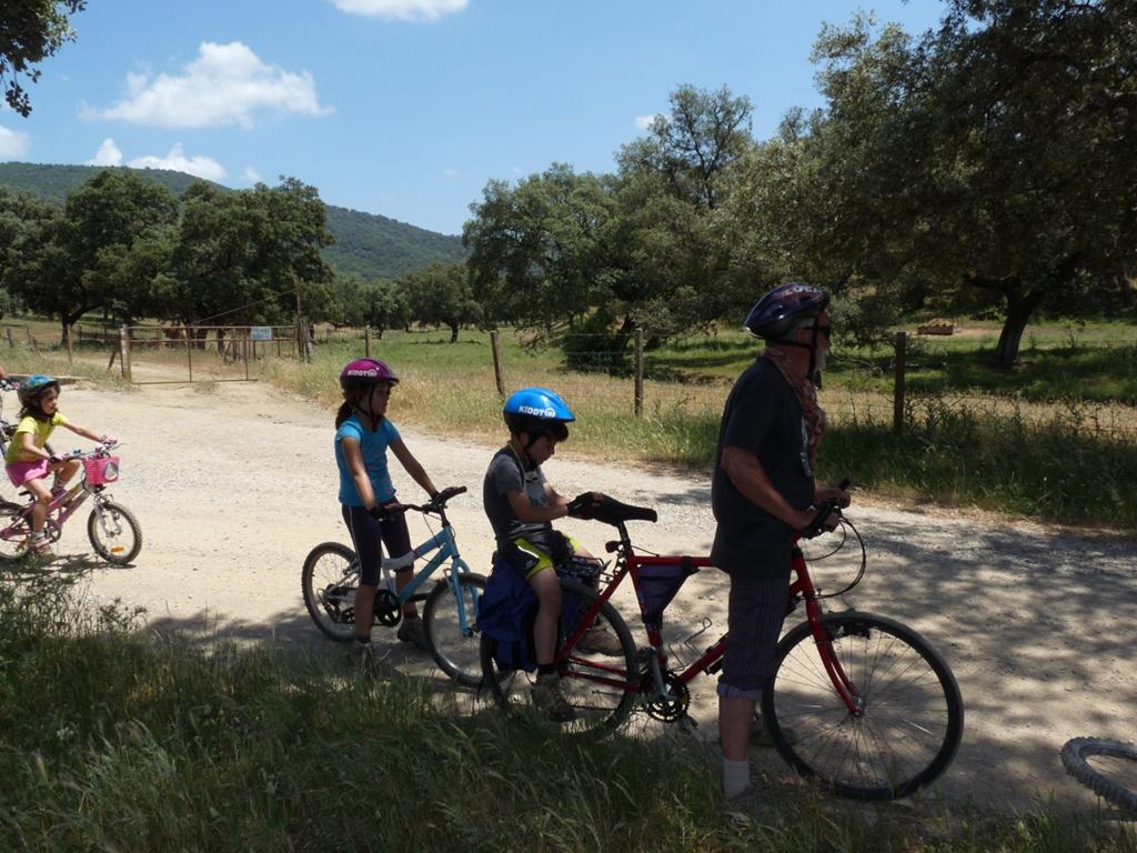 Salimos dirección Sevilla, en Osuna nos salimos a la derecha buscando los pueblos de Lantejuela, Fuentes de Andalucía (aquí nos reunimos con Alfonso, Erika y su hija Alba y con las bicicletas que las transportaba en un remolque), la Campana, Lora del Río, Constantina y, por último, Cerro del Hierro, que es un poblado minero. Allí nos esperaba Oscar, Elena, sus hijos Javi y Alba y unos amigos de Oscar.