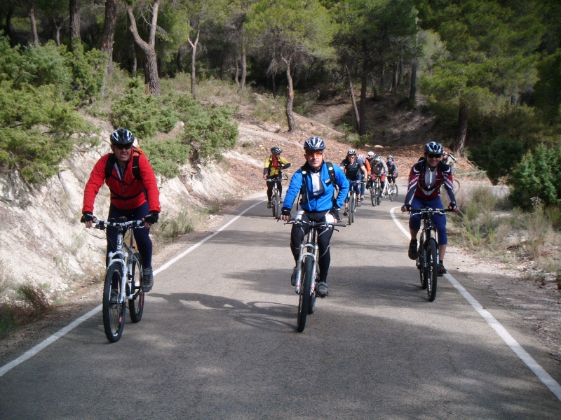 Os transcribo las impresiones de nuestro vocal de BTT, Paco Megía: "Las rutas de bici que nos preparó Oscar fueron espectaculares, la del sábado casi siempre por veredas con el punto justo de dificultad para poner a prueba la pericia de los "bikers", y la del domingo más carrilera, atravesando la zona más bonita de la sierra y con unas vistas panorámicas espectaculares. Y todo lo demás estuvo a la altura: el alojamiento, la comida y por supuesto la compañía. Ah, y ese arroz murciano de despedida!!! Todo un descubrimiento Sierra Espuña."