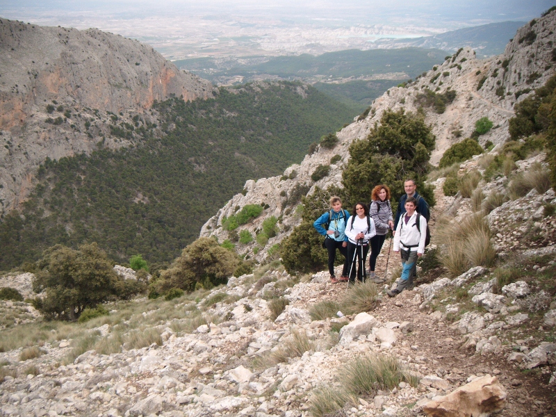 Como ya os digo hicimos dos rutas de senderismo, dos de BTT y hubo quién incluso se fue a Murcia y a Alhama de Murcia (fiesta de los Mayos) a hacer turismo. Aunque a priori pueda parecer que está muy lejos de Granada, solo se tardan unas 2:15 minutos, por lo que puede ser un destino a tener en cuenta para futuras actividades. Para los que hicimos senderismo comentaros que hay unas excelentes veredas muy marcadas y que te permiten acceder a los distintos valles y cumbres sin un esfuerzo extraordinario conociendo los famosos Pozos de la Nieve de Murcia, que abastecían de hielo a las familias acomodadas de los alrededores. Para los que practicamos BTT descubrimos una sierra que nos permite un excelente acceso por las veredas totalmente ciclables tanto para subir como para bajar y con un amplio abanico de posibilidades. Todos las vías tienen un trazado que las hace muy llevaderas para todos los niveles de forma física. El entorno de Sierra Espuña, con su Pico Espuña (1514m.) es igualmente atractivo por su cercanía a la costa, donde fuimos pasando de los pinares a los naranjos y viceversa. Merece la pena que se divulgue el conocimiento de la zona donde además hay muy buenas posibilidades para la escalada. Como podés imaginar toda la actividad deportiva estuvo acompañada de su correspondiente aspecto culinario resaltando la caldereta de cordero que nos preparó el organizador y el arroz de cierre que nos tomamos en la zona. Hemos pasado un muy buen fin de semana.