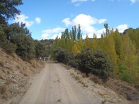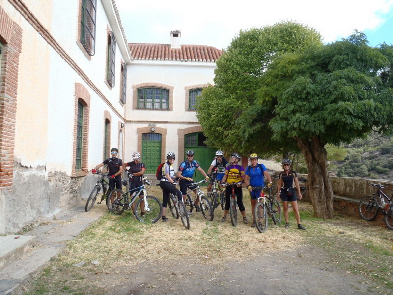 Esta aldea abandonada del Raposo, tiene su origen en un latifundio llamado el Cortijo del Carmen, de actividad ganadera pero que en la I guerra mundial fue poblado por alemanes que explotaron las minas de plomo amarillo (wulfanita), de ahí el aspecto colonial de alguno de los edificios que se mantienen en pie, tambien se puede ver su típica iglesia de la virgen del Carmen y un refugio que habrá que averiguar si está en buen uso. Hasta aquí era bonito pero después fue más y para guinda en varios momentos se nos cruzaron ciervos, que por estas fechas están en la típica berrea. Después, ya salimos a la gran pista que casi todo en bajada llega al recóndito Charches, pueblo que disputa ser el más alto junto al Trevelez alpujarreño. Desde aquí ya por asfalto y a una velocidad frenética nos lanzamos hacia la Calahorra pasando por alguna que otra edificación donde antaño hacían los wester. Pasamos la autovía A92 y como decía alguno "se ve el castillo en lontananza", aunque todavía queda subir el llamado por los lugareños puerto talleres Olmos ya que aunque no lo parece pica siempre para arriba y parece que no llegas nunca.