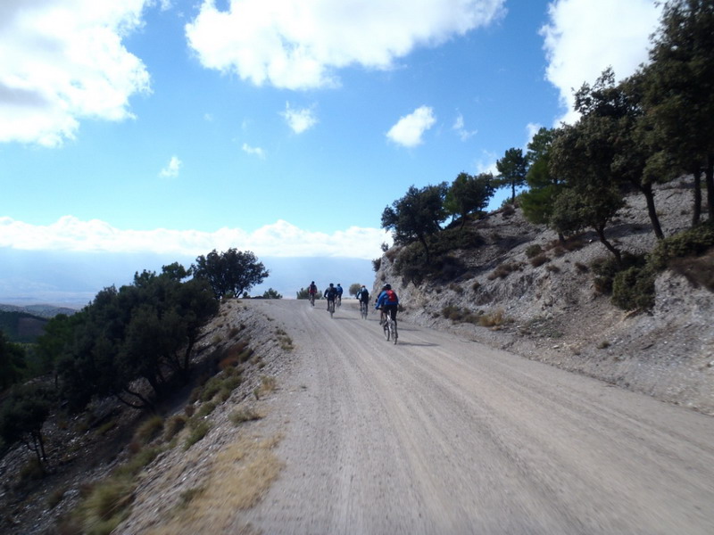 La idea primera era salir a recorrer los carriles de la Sierra Nevada en dirección Aldeire y por debajo de los morrones del Mediodía y San Juan pero como el día estaba algo nubladito y para no pasar mucho frío, que no están los cuerpos para ello, la organización del itinerario decidió cambiar cara Norte por la Sur e irnos hacia las estribaciones del parque natural de la Sierra de Baza.