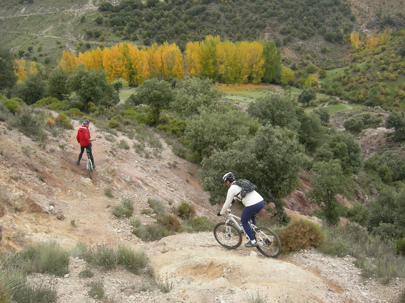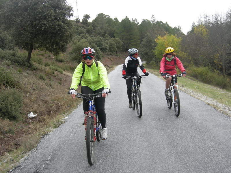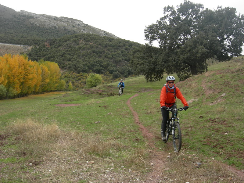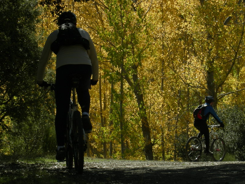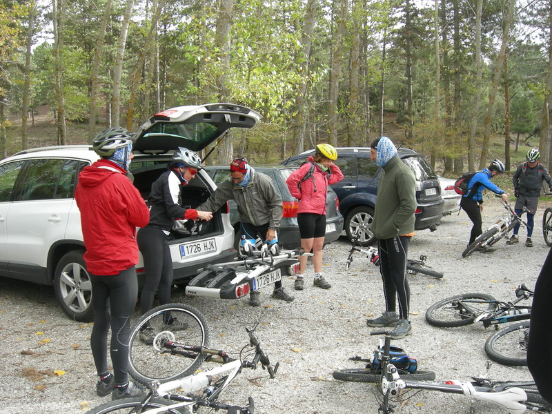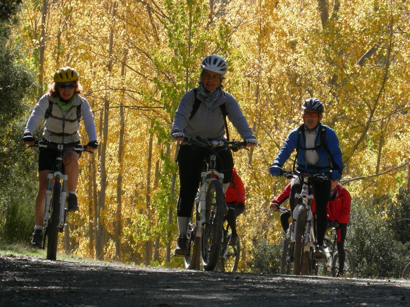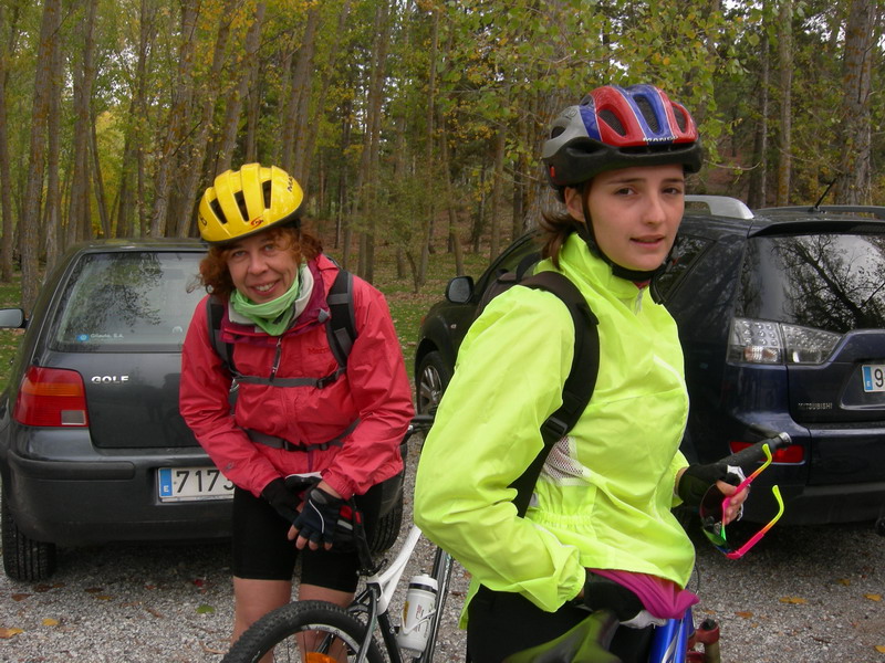 Yo voy pelándome con los pedales automáticos hasta que Eduardo decide "arrancarme" las plataformas de apoyo que en definitiva no son más que una muleta psicológica para vencer mis dudas. Ahora no me queda otra que concentrarme en serio, dejar de quejarme y tirar "palante". La verdad es que con la ayuda de todos voy ganando confianza a cada pedalada y empezamos a disfrutar de un día otoñal en el que se atreven a visitarnos los primeros rayos de sol.