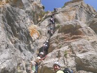 Para el domingo teniamos preparada la Vía Ferrata del Torcal, que nos puso a todos a pasar calor por la pared por la que progresábamos, pero que el atractivo de la misma hizo que la disfrutaramos mucho ya que tiene un nivel de exigencia adecuado y la zona por la que discurre es de gran belleza.