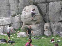 Centrandonos ya en el tema de la escalada el sábado estuvimos escalando cada uno en su nivel, en distintas vías muy bien seleccionadas, de tal forma que todos acabamos el día con las espectativas totalmente cubiertas y conociendo por experiencia propia lo que significa el término "canto torcalero". Para el sábado nos quedaba por preparar una suculenta cena común, para hacer tiempo hasta que anocheciera y tener una buena visión.