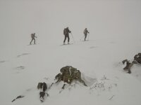 Se decide por mayoría natural, incluido el voto de Blancanieves, abortar el segundo ascenso del día y bajar para escapar del vendaval.