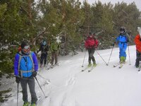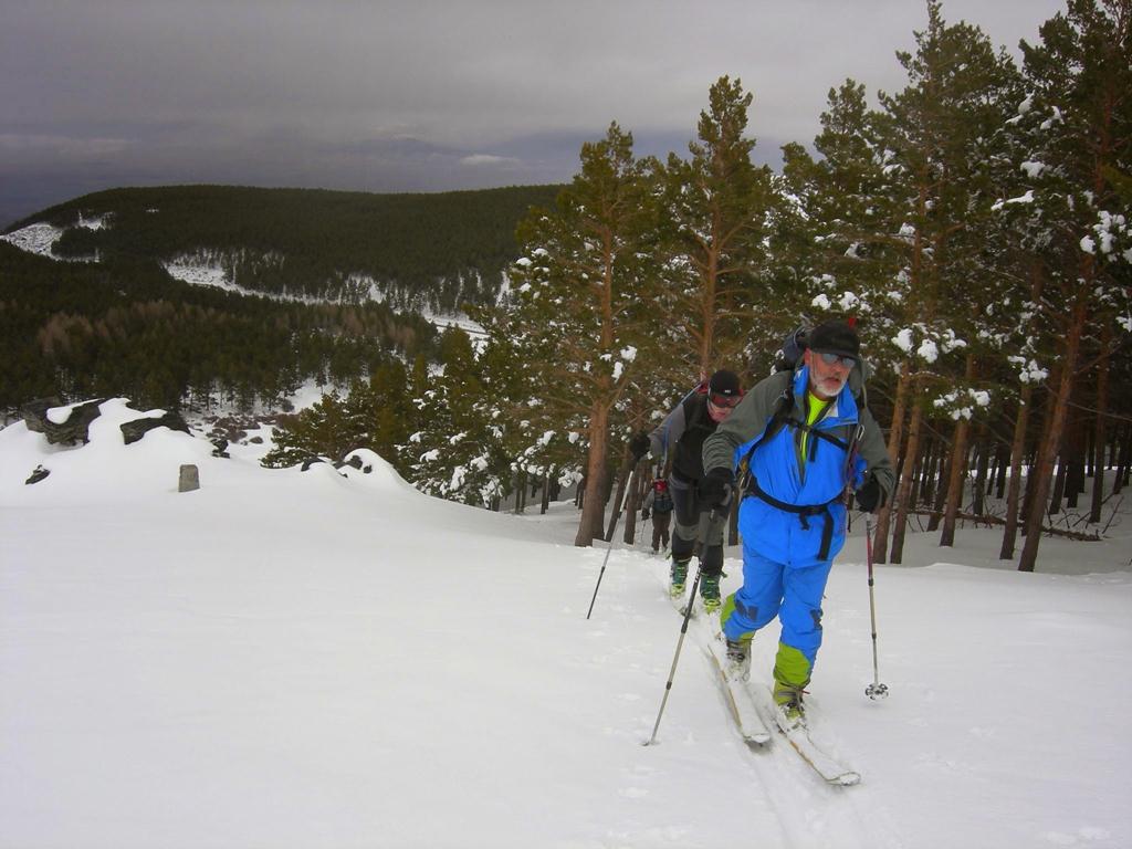 Continuando por el borde del pinar llegamos a un barranco de armas tomar con bastante hielo y que hubo que remontar. Volvemos a subir hasta el Hornillo por segunda vez, donde los enanitos por aclamación deciden irse en busca del porrón.