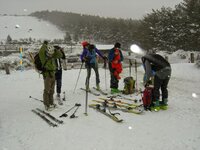 Pero los 6 enanitos y Blancanieves, valientes e intrépidos decidieron plantarle cara a doña Climatología y como se observa en la primera foto del reportaje, se pertrechan para la que les viene encima. A ellos no los iba a arredrar unos copos y un poco de niebla, aunque creo que no eran muy conscientes de a donde se iban a meter a pesar de que ya caían copones.