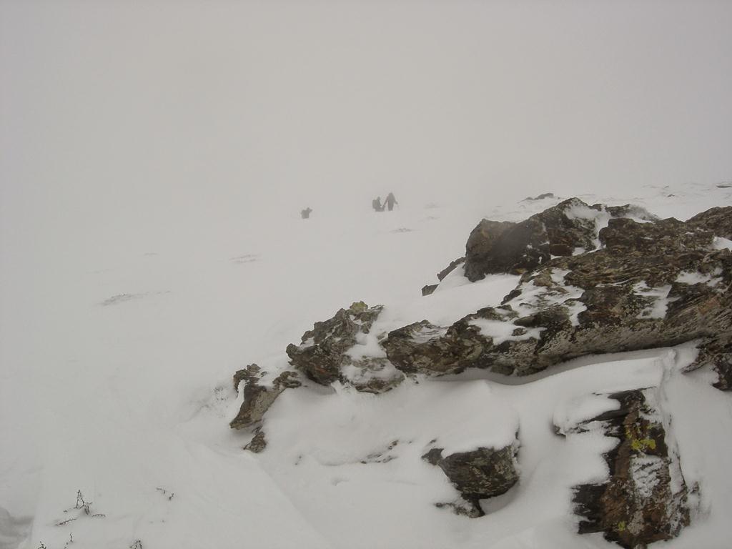Al llegar a lo que creían la cima del Hornillo, el vendaval y la ventisca eran tal, que alguno de los enanitos se refugió en un hueco junto a una planta cristalizada que había en la cima, mientras dilucidaban en enfriada-discusión la conveniencia o no de seguir con la excursión.