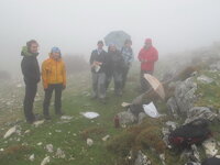 Plan D: Llegamos al collado Trabino. Hay una niebla tan espesa que me ha hecho sacar la brújula ya que el GPS de Pablo no es de fiar de tan nuevecico... (El Rayal sigue totalmente cubierto)
