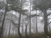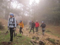 Plan G: Bajando por el mismo camino, con la misma brújula en mano, disfrutamos del ambiente de niebla fantasmagórica y de la vegetación de la sierra de Cazorla de la cual parece que van a salir duendes y lobos feroces (El Rayal sigue totalmente cubierto)