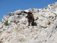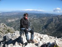 Seguimos bajando, pasando por una cantera con impresionantes bloques de mármol hasta un río con un puentecito para hacer una pausa antes de la auténtica subida. Aquí hubo una ronda de tentempiés de todas las variedades y formas. La subida hasta nuestra meta estaba dividida en tres etapas de tres collados, una más bonita que las otras y siempre con vistas muy amplias. Hizo muy buen tiempo, aunque no lo suficiente como para divisar África.