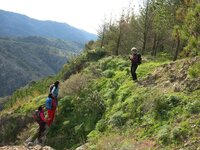 Ya preparados empieza la auténtica ascensión entre pinos y escaleras.!Qué altas! ¡Las de mi casa son de 18 y no de 50! Empieza la protesta de algunos. ¡Uf! ¡Qué calor!!!Mesobra to! Dicen otros. Pronto el grupo empieza a estirarse como un tirachinas.