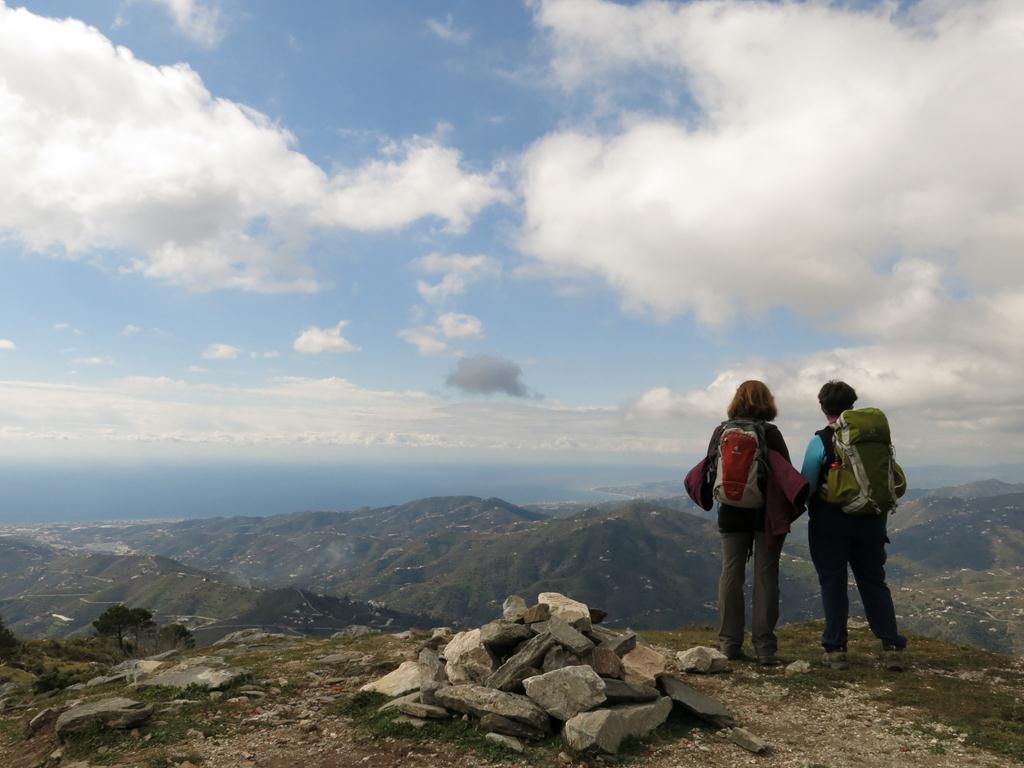 Hacia el interior, la Axarquia , el barranco de Cómpeta y el Lucero casi oculto por una nube que amenazaba lluvia.