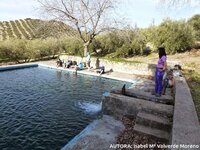 Tras atravesar unos campos de olivos en plena recolección, aperos tirados por el suelo, llegamos a un estanque que invitaba al chapuzón y, como estábamos en invierno, nos conformamos con meter los "pinrreles".