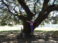 Torcemos en dirección norte y el camino se adentra en un estupendo bosque de encinas y quejigos, de enorme porte y varias veces centenarios, en la cara este del Cordal del Arroyo del Puerto y divisamos hacia el este la aldea de Las Lagunillas.