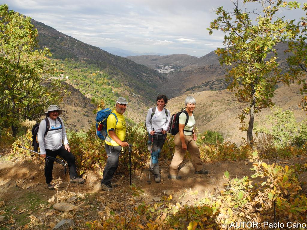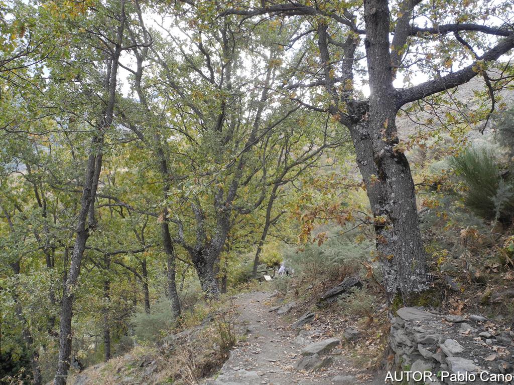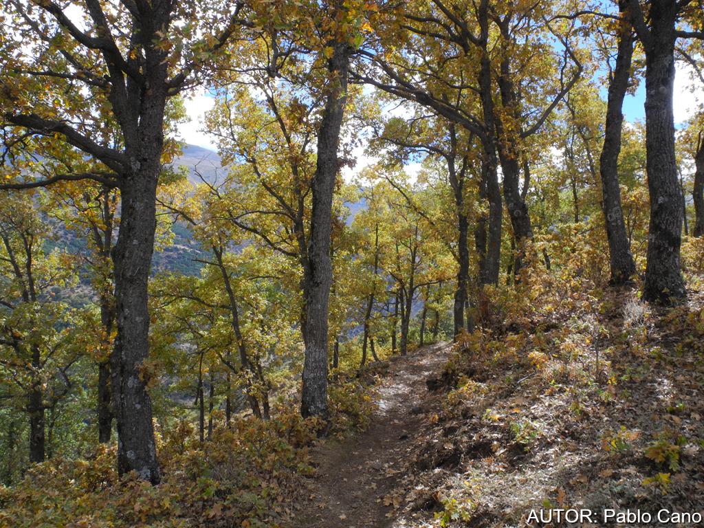 Observamos un pequeño pilar que han realizado por debajo de la alberca. Comenzamos a bajar tomando el sendero y disfrutando del día y de los colores otoñales. Volviendo por la vereda de la Estrella.
