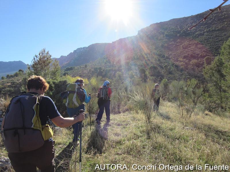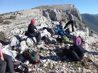 Bueno por resumir después de subir casi 800 mts entre pinchos, matorrales y toda clase de vegetal verde que os podáis imaginar, llegamos a la cuerda que nos llevaría a los Tajos de Alcandora, alguno que otro preocupado por si era verdad lo de sacar la linterna para la vuelta, pues vista la subida..¿que nos esperaría en la bajada?.