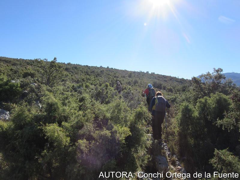 La verea buena, el camino que cruza etc.... según Ana visto en el google earth....no sabemos dónde está pero los pinchos “ansi” de espesos, los matorrales “ansi” de altos, los pinos en medio del camino ¿ he dicho camino? ¿que camino?... eso si que está y a mogollón. Todos muy callados y sin protestar lo más mínimo, seguíamos a nuestra guía. Mara prudentemente preguntaba de cuando en cuando ¿ cuánto desnivel llevamos ya? 200mts Mara, no puede ser!!!! Tiene que ser más....