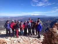 Resguardados del frío de poniente, con magistrales clases de Geografía por parte del Pater y Ana y con magníficas vistas, comimos ricas viandas, acompañadas de la Bota que no paraba, variedades de carne membrillo, chocolates, tortilla y...