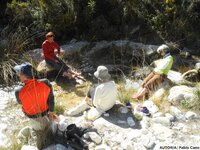 Bajamos de nuevo al Collado de Dos Hermanas, comenzando un descenso “eterno”, primero hasta la mesetilla frente al Cisne, y desde ésta, al Camino Real, junto a la balsa y helipuerto del Infoca. Continuamos un trecho corto hasta el Río Higuerón, donde algunos “castigan” con crioterapia sus abrasados pies, y volvemos a subir al Collado Blanquillo, donde sobre las 17'50, nos despedimos ¡cautivados por su encanto!, del Cisne. Desde aquí desandamos otro tramo hasta la Venta Cebollero, solitaria y ruinosa donde comienza el sendero, junto al cauce del Arroyo de El Acebuchar. Nos conduce, sin más novedad que el descubrimiento de varias “caleras”, que pasaron desapercibidas por la mañana, a la aldea. Hacia las 6’30, por una ramblilla más alta, tras 8 horas, 19 kms y 1475 metros de duro ascenso, entramos en El Acebuchal, buscando con anhelo ¡una cerveza fría con tapa generosa!. Aunque el único bar abierto satisface nuestro “capricho” con unas cañas expres con patatitas de bolsa, poco nos importa, brindamos felices para cerrar esta jornada inolvidable.