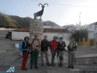 Abandonamos la autovía en la salida 180, incorporándonos a la GR-5208, que discurre con buen firme, entre pinos carrascos, por la loma de la Gorgoracha, hasta la planta de reciclaje RSU. Desde ahí, piso irregular y panorama desangelado hasta el destino. A las 9’00, puntuales, nos recibe “el Pollúo” en este pueblo escondido en la falda sur de la Sierra de Lújar, de pasado minero ( Mina de Peñón Negro, Mina de los Dolores, Mina de la Soltera, Mina de la Paloma, Mina de los Catorce; plomo), bajo el monumento a la Cabra Montés. Conocemos los detalles de su propuesta ¡ radikal!, en el bar de “la mala sombra”. En resumen, consiste en ascender el llamado “Cordel del Cerro de Las Monjas” más allá del Mojón ( o Morrón) de Lújar (1650 mts), superando, en apenas 4 kms., un “paredón” de 1000 mts. ¡Fuerza y Paciencia!.