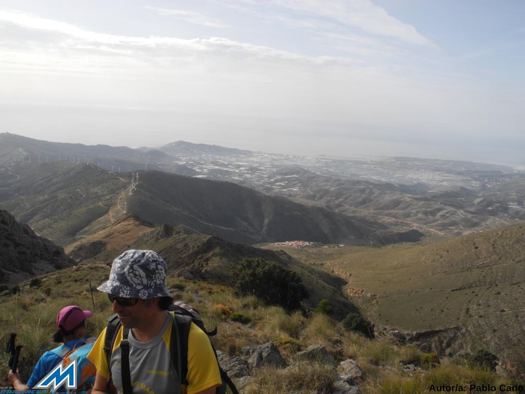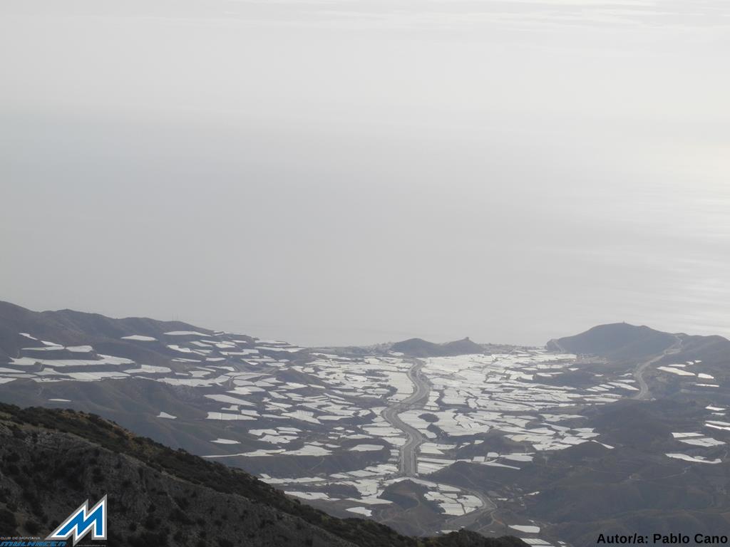 Hacia la costa, las vistas son parecidas, pero el mar de plásticos entre Don Carlos y Castell, atravesado por la comarcal, semeja un ala delta gigante listo para el despegue. Nos giramos hacia el norte, donde se enseñorea Sierra Nevada, desde el Caballo, hasta el Mulhacén, y en su falda, algunos pueblos de La Alpujarra. Pueden apreciarse Cañar y Soportújar, separados por el Río Chico, Capileira, en el Poqueira, destacándose Órjiva, en el fondo del valle, ribera del Guadalfeo.