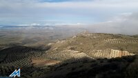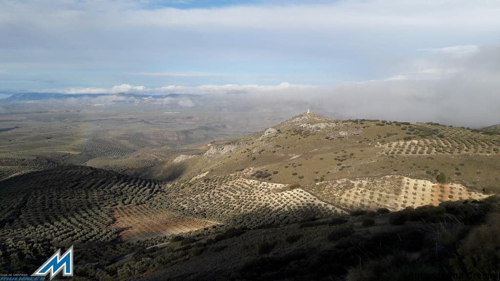 Al día siguiente de la cena aniversario del Club, se nos ocurre ir al Orduña, desde el carril de Cogollos a Deifontes por una loma poco explorada y sin camino. El problema es que era un día de DANA (depresión aislada en niveles altos). Un día muy claro con algunas nubes corriendo a toda velocidad por un cielo azul intenso. Habían caído unos copos el día anterior y estaba un poco nevado.