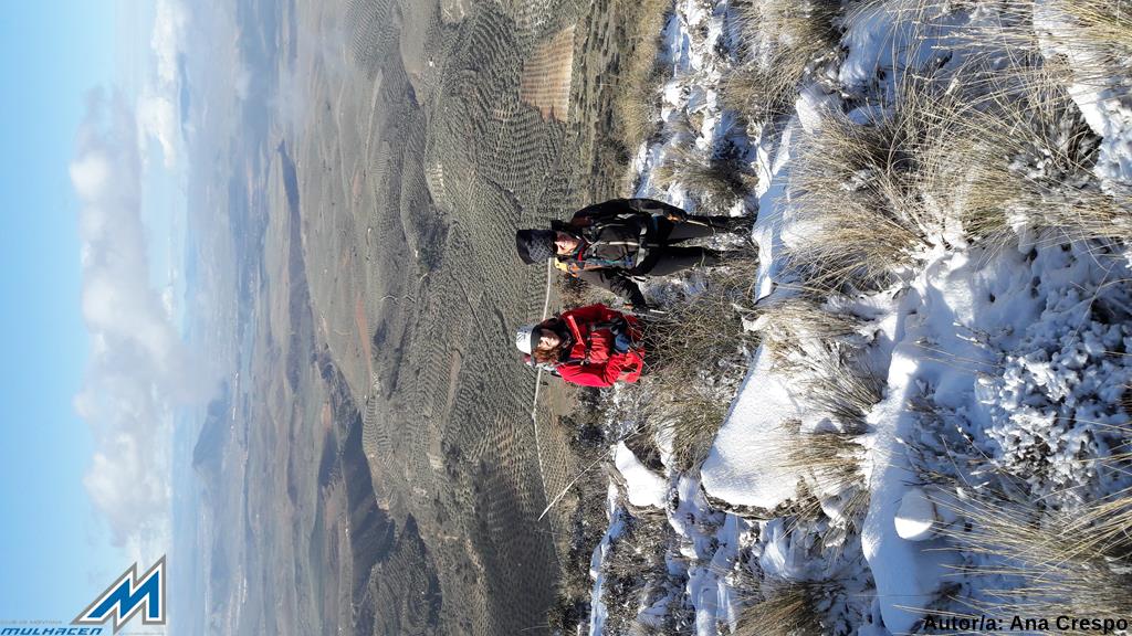 Estábamos cuatro, Paloma, Cristina, José Manuel, un nuevo compañero de andanzas que iba a pasar su examen de entrada el Club Mulhacén… Vaya examen: subimos campo a través, llegamos a la primera cumbre (el Cerro Gordo) antes del Orduña y… nos tiró el viento!