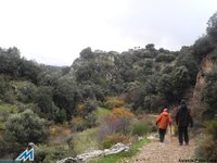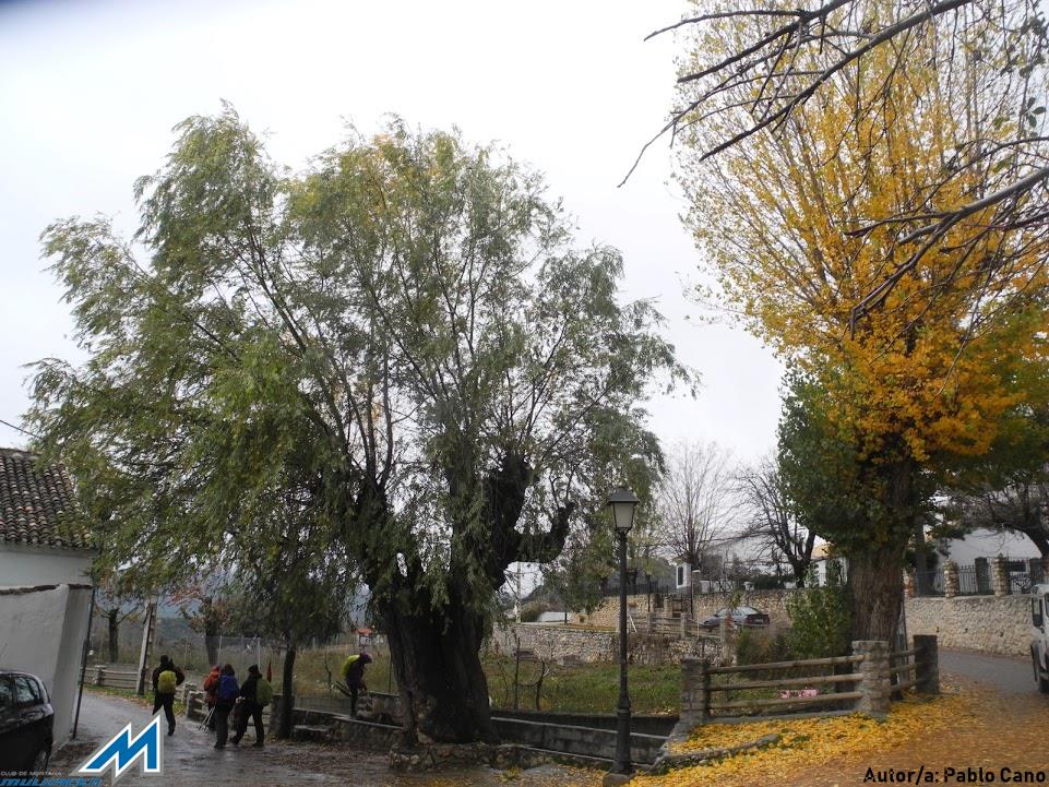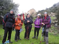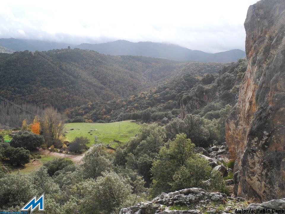 que pertrechados con chaquetas, capas y paraguas defendieron la tozuda aritmética del: ¡ya veremos!. Con firme determinación, marchamos al Caserío de Prado Negro con el propósito de ¡trepar!, a la Peña de la Cruz (2027mts) en Sierra Arana, junto a Parque Natural de La Sierra de Huetor (año:1989). Sobre las 10’15, nos abduce la niebla, que “lame” los coches como baba de caracol. Sin embargo, poco después, en la salida 264 de la A-92, rumbo al área recreativa de La Fuente de los Potros/ Las Mimbres y Venta del Molinillo, el panorama, menos hostil, nos empuja a proseguir, confiados en que podremos burlar las inclemencias climáticas, ¡ cómo en tantas otras ocasiones! A las 10’40, aparcados los vehículos en el Caserío de Prado Negro, seis valientes, capitaneados por Ana: Kika, Enrique, Mara, Maite y el cronista, comenzamos la excursión junto a la fuente, cruzando el camino asfaltado y subiendo por un carril terrero hacia la falda de Sierra Harana, conocida como la Solana de Prado Negro. Sin embargo, como la pesada niebla forma un muro perimetral disuasorio, giramos 90º en dirección sureste, transitando por las sendas del paraje de La Umbría de las Chozas. Mantenemos, con ligeras subidas, la curva de nivel, paralelos por tanto al carril general, el PR-A 386; Prado Negro- Cortijo de Pedro Andrés- Sillar Baja, llegando a un cruce de caminos, donde se entrevén algunos cortijos y fincas valladas. Proseguimos por un carril que nos permite avanzar, pero ¡hartos de “amasar” barro con las botas, aprovechamos un encinar adehesado, para descender, entre la espesa bruma, al camino general, donde ponemos rumbo al poblado. Éste, lo cambiamos pronto por una senda que acompaña al Arroyo de Prado Negro (futuro Fardes) que luce estampa otoñal, mientras atraviesa el somero encinar ribereño. Llegamos a una praderilla, limitada por varios lienzos de un cortijo en ruinas, que rodeamos, y, subiendo por un pequeño terraplén, volvemos al carril principal, que penetra de inmediato en la población. Tristemente, la atractiva subida a la Peña de la Cruz puede quedar reducida al “chapapote” matutino, máxime cuando Ana y Maite deciden volver a Granada. Pero, Mara, ¡“la inconformista”! se rebela y, ofrece, para “arreglar” la jornada, una visita a la ¡espectacular cascada! de Prado Negro y el mirador del Tajo del Despeñadero. Se localiza justo debajo de los mesones por lo que, tras la cerveza “adelantada” con Ana y Maite, que se despiden, el resto, Kika, Enrique y el cronista seguimos a Mara. Nos descubre un corredor donde discurre un modesto arroyo (el futuro Fardes) que salva el encierro rocoso dando saltos y trompicones. Digno de admirar el que provoca el arroyo de Fuente Grande poco antes de unir sus fuerzas con el “hermano mayor”. A continuación, cruzando un puente, accedemos al mirador, que se asoma al Cortijo del Despeñadero, donde el río escapa hacia la Venta del Molinillo. Girando la cabeza, la Peña de La Cruz y el Caserío de Prado Negro componen un cuadro fugaz, a donde regresamos en apenas 10 minutos. Para “redondear” esta salida, Mara, a petición de Kika, “se convierte” en ¡micóloga experta! en la recolección de Níscalos, -pero ¡sin cesta de mimbre!,- por lo que despedimos esta extraña jornada, pastoreando los pinares de la Fuente de los Potros, mientras nos comemos los bocatas.