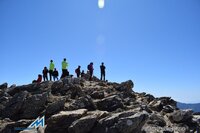 Nos ponemos en movimiento a las 13’00, “Los Bestiajos” Conchi y Guillermo, Manolo y el cronista formamos la cola del ondulante Áspid Mulhacenero, mientras que Ana “La Volaora”y Paloma, que se habían adelantado, prefiguran la cabeza serpenteante que avanza decidida. Pero esta escena, cambia apresuradamente, cuando Guillermo,Conchi y Manolo demarran en las rampas iniciales, emprendiendo una fulgurante“remontada” que les aupa al Torrecilla en apenas 20 minutos. ¡Casi 4 minutos más tarde! A las 13’24, superada la parte más suave del ascenso, hoyamos el vértice geodésico los siguientes: Ana “La Volaora”, Paloma y el cronista, incorporándose Emilio y F.Hita, poco después. Oteo el amplio panorama desde la atalaya, ¡límite provincial con Cádiz! mientras culmina el resto de “La Tropa”. Me sorprende que aun se reconozca Sierra Nevada en el confín Este andaluz. Además, superpuesta, en un plano inferior, se distingue Sierra Tejeda- Alhama. Bañada por el Mediterráneo, la Hoya de Málaga ocupa el sector sureste y más cerca, ¡casi palpamos! (entre Marbella y Estepona), la vecina Sierra Bermeja -donde los pinsapos crecen sobre las ígneas peridotitas. Continuando con el itinerario, y orientación sudoeste se extiende, a nuestros pies, el precioso Valle del Genal, que limita con “Los Alcornocales”. Si alzamos la mirada, no solo vislumbraremos el Peñón de Gibraltar, sino que podremos atisbar el Atlas marroquí (Parque Nacional de Talassemtane), al otro lado del Estrecho.¡Por fin! Sobre las 13’35 “nos sirven” el ágape en la ¡apacible! Cumbre. Lo disfrutamos distendidamente, hasta que, llegados los postres, el trío de los “Bestiajos” y Manolo anuncian que adelantan la partida, puesto que quieren regresar a Los Quejigales por el pinsapar de la Cañada de las Ánimas, sito bajo el Puerto del Oso. La fotografía realizada por Conchi, en el Pozo de la Nieve, confirma que inician la bajada por la Cañada a las 15’15. Aunque el itinerario resulta de mayor longitud (2kms), señala, también, que nos esperaron, en el Área Recreativa, más de 30 minutos. Pero la razón es sencilla, los restantes, no solo finalizamos el almuerzo, sino que, se “disparan” las últimas fotos grupales “de cumbre” en torno a las 14’24, antes de abandonar el Torrecilla. Iniciamos el regreso por el itinerario conocido, lo que nos permite apreciar como la luz vespertina dota de una perspectiva irreal a la Meseta de los cenicientos quejigos, desde este Cerro de la Plazoleta. Seguidamente, aunque Ana “la Volaora” y Judith, que encabezan la comitiva, imponen ¡la quinta marcha! que provoca que sobrepasemos el Pilar de Tolox, sin detenernos (14’55) “Los Hita”,”Sanitarios” y Teresa prefieren el paso del ¡sin prisa pero sin pausa! que propicia que Miguel y el cronista se demoren con la intención de engrosar y mejorar los álbumes respectivos. Con todo, sobre las 16’00, ya nos encontramos en el cruce del carril del Puerto de los Pilones con el sendero que baja a la Cañada del Cuerno. Alcanzamos “al pelotón”, que sigue “a su ritmo”, y, sin olvidar la maravilla natural, Miguel continua con el retrato, ahora grupal.F.Hita, Paloma, Manolo Palomino, Ana Quintana y Kika se prestan como modelos sedentes; Emilio y Teresa aparecen de pie. Salimos de la Cañada, zizagueando, bajamos las rampas, atravesando, a continuación, el pinarillo, acabamos pisando la praderilla del Arroyo de las Carboneras, donde margaritas y narcisos “encaprichan” al cronista. Finalmente, sobre las 17’08 cruzo el puentecillo de madera, tomando a la izquierda el carril que me conduce al Área Recreativa. Organizamos los vehículos rápidamente, saliendo del Parque Natural a la carretera local en sentido Ronda, dado que, en el kilómetro 11’05 el Mesón La Laja es nuestra mejor opción. ¡Por fortuna permanece abierto! Es¡El colofón perfecto! porque somos atendidos con tanta hospitalidad y gracia, que este tercer tiempo se transforma en “velada de banquete”, donde si Guillermo “el Bestiajo” triunfa, Emilio no le “va a la zaga”. Incluso una camarera es muy aplaudida, tras “ceder” a la “provocación” del Bestiajo. Salimos del restaurante, cuando el cárdeno crepúsculo colorea las nubes. Vencido el ¡intolerable!Miedo preventivo, se suceden, por doquier, las inevitables despedidas, con besos, abrazos y confiados ¡apretones de manos! que anticipan el regreso a Granada.