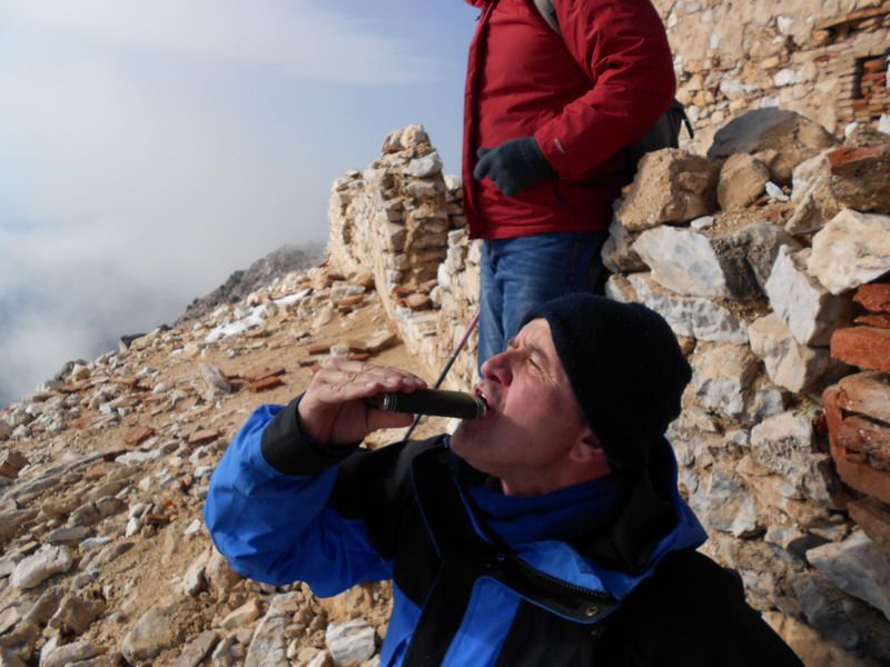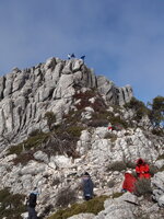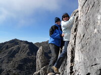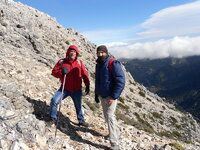 _ !Sólo es en el collado, cuando pasemos de aquí todo pasará! Pero no fue así. Las ráfagas eran muy fuertes. Un grupo decidimos volver para refugiarnos en unas rocas mientras tres aguerridos machotes decidieron subir.
