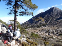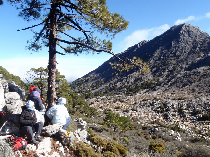 Después de las explicaciones del Guía sobre los pinos resineros, sus utilidades y cómo se obtenía la resina , un pequeño descanso en el pino guía para reponer energías y tomar algunas viandas para emprender la segunda parte de la ascensión, amenizada por cómo se fabrican, chorizos, morcillas, pan de higo y jabón casero.
