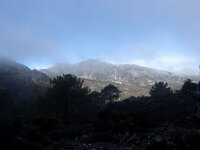 Eran las ocho de la mañana y puntuales como relojes suizos, nos encontramos en la rotonda, sita enfrente de "Serrallo plaza", un grupo de dormidos mulhaceneros-as mirando al cielo porque era casi de noche y las nubes lo cubrían todo.
