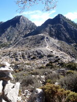 Cuando el Pater volvió de la cima dijo: A subir a un pico que somos del club Mulhacén y aquí no hace tanto viento. Así que piedra tras piedra, porque no había otra cosa, subimos al Cerrillo de la Mota.