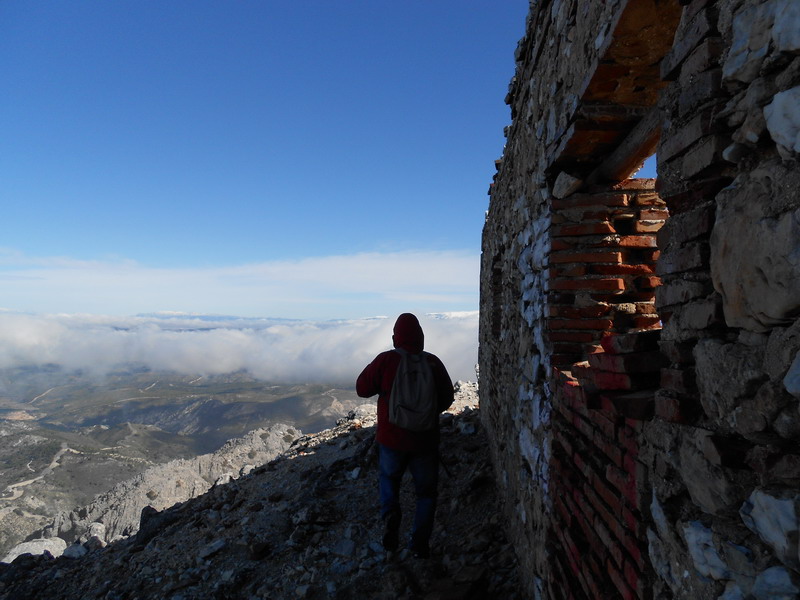 Todo despejado, con unas vistas al mar y a Sierra Nevada maravillosas. El Atlas de África se veía con gran nitidez como pocas veces. Ha merecido la pena subir aquí, aún con las protestas de Mara que no alcanzaba a subir con esas piedras tan grandes. Alguien sacó una hogaza de pan, un taco de jamón que con su navajilla comía poco a poco porque era tarde y el viento no le había dejado probar bocado. Le faltó el vino.